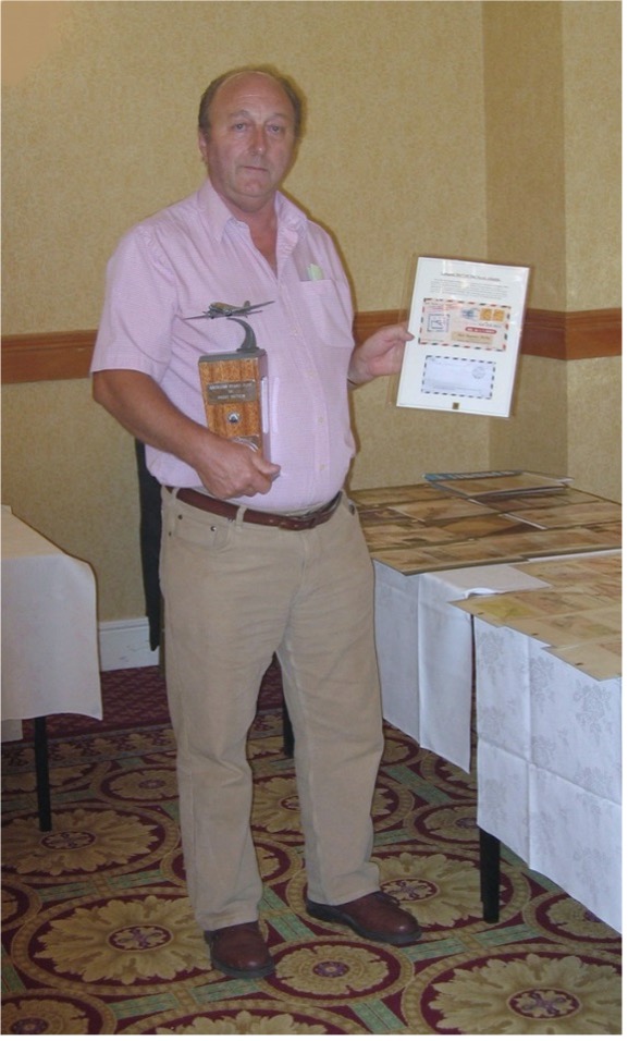 2004 Convention at Corby (weekend) Eddie Spicer shows a page from his competition entry which won him the Aero-Philatelic Class.
