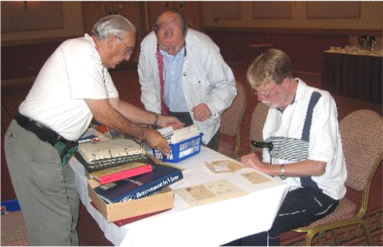 2006 Convention at Swindon (weekend) Bill Trower's table at the Bourse; it looks as though Peter Fowke (seated) has found something interesting.